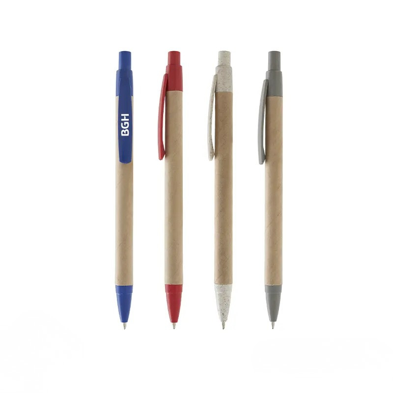 Lápiz ecológico fabricado en celulosa y Wheat Straw con clip retráctil y tinta azul. Ligero, resistente y personalizable, ideal para campañas sustentables.
