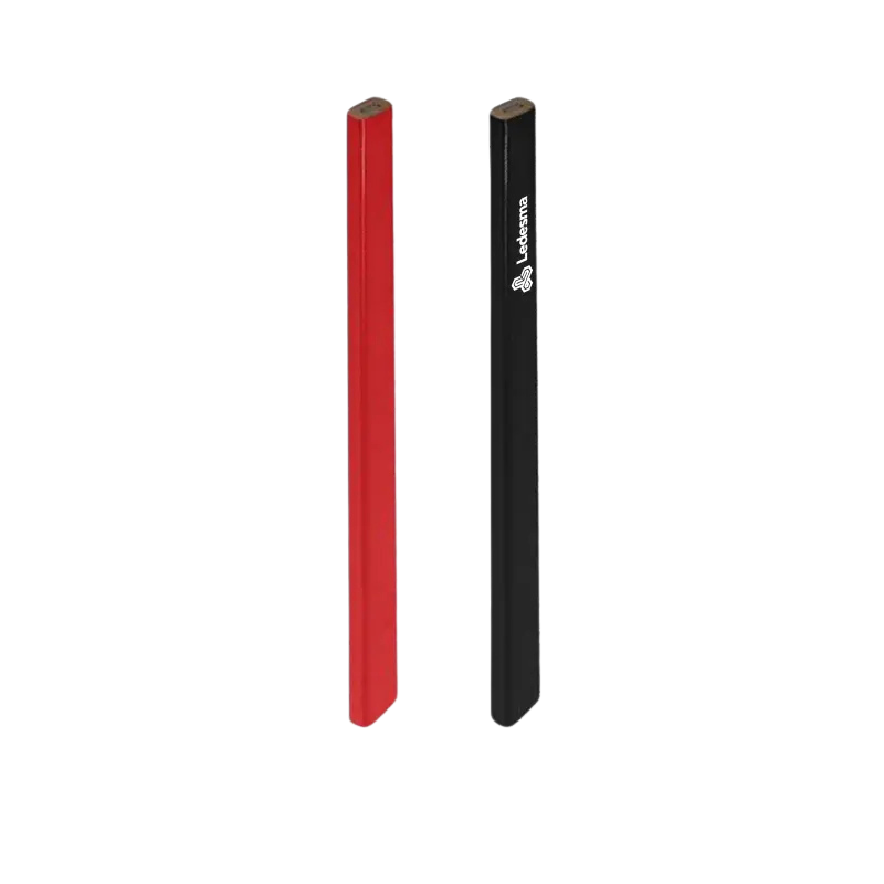Lápiz grafito rectangular tipo carpintero con mina HB, apto para múltiples superficies. Disponible en rojo o negro y personalizable en láser o tampografía.